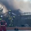 Video: feroz incendio en un depósito de autos de la Policía Federal en Nueva Pompeya