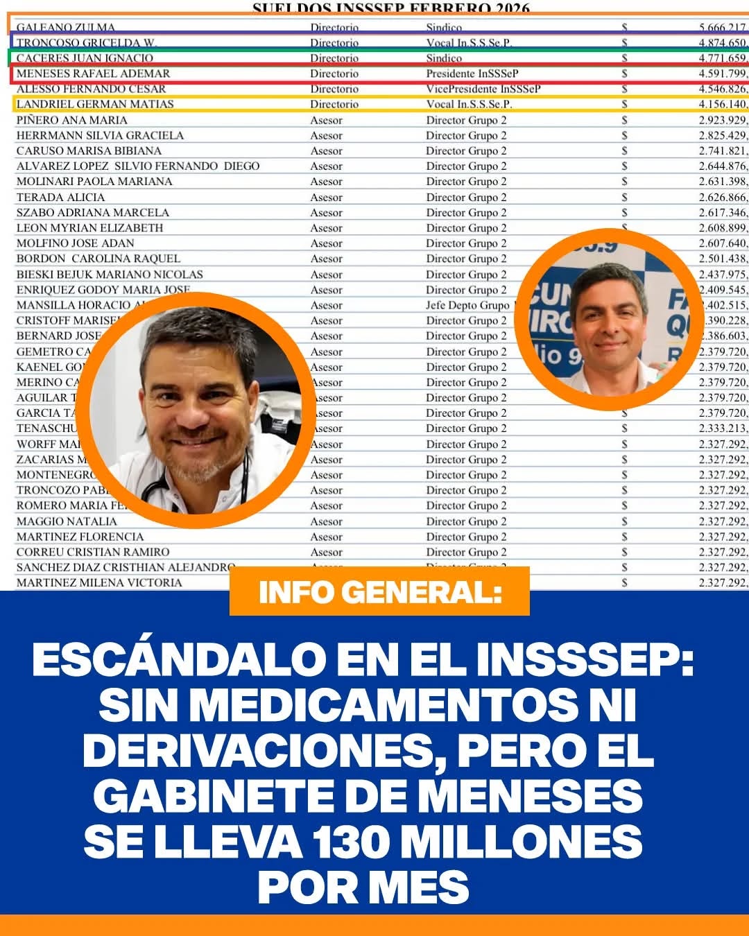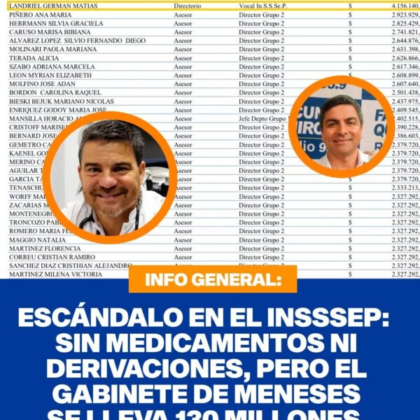 Escándalo Insssep: sin medicamentos ni derivaciones, pero el gabinete de Meneses se lleva 130 millones por mes