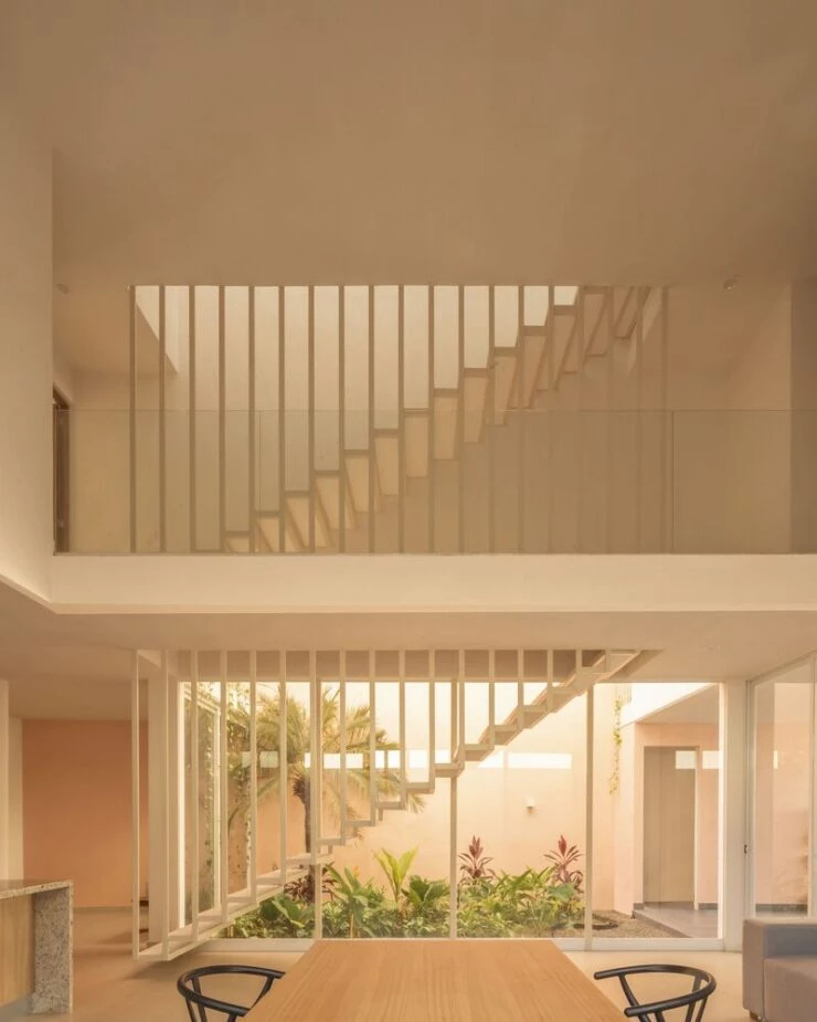 En este contexto urbano tropical, los vanos estratégicamente ubicados y las pantallas cuidadosamente diseñadas responden al juego de iluminación natural y vientos dominantes característicos de la región, logrando una fusión equilibrada entre el interior y el exterior.