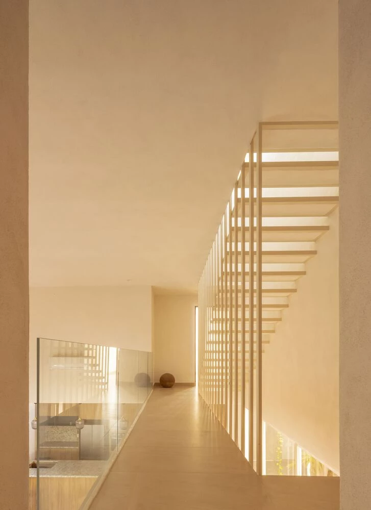 El diseño de esta vivienda se enfoca en la creación de espacios que brindan una sensación de refugio y privacidad, fusionando la estereotomía y la sencillez.
