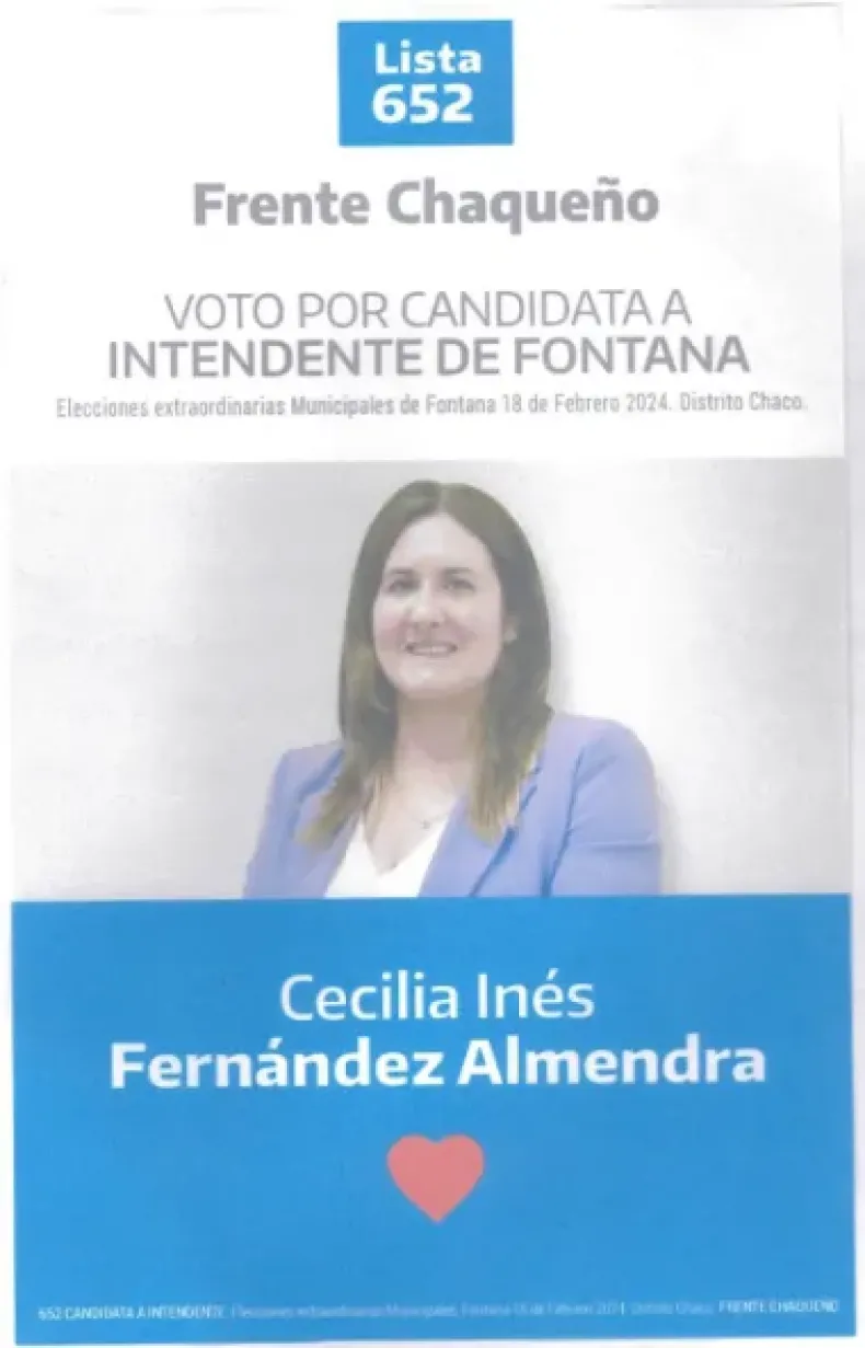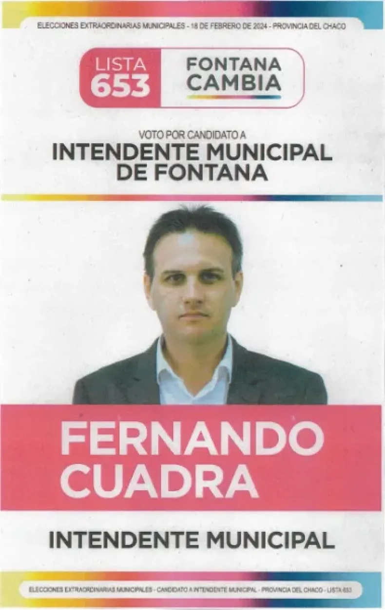 Entre los candidatos se encuentran Cecilia Inés Fernández Almendra, representante del Frente Chaqueño, y Fernando Cuadra, postulado por Fontana Cambia (JxC), como máximos aspirantes al cargo. Les acompañan Marcelo Andres Dujaut de La Libertad Avanza, Blanca Lorena Castro del Partido Movimiento de Bases y Alejandro Herrera del Partido Proyecto Renovador, quienes también buscan ocupar el lugar vacante.