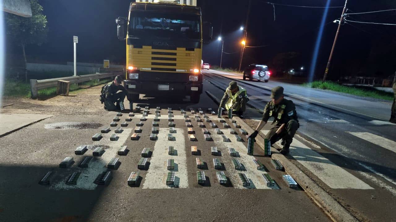 Durante la inspección del semirremolque, sobre el que se apoyaba un container, los funcionarios divisaron anomalías en una placa de cartón que servía de apoyo al contenedor y se encontraba dañado, a través del cual se observaban paquetes de cigarrillos.