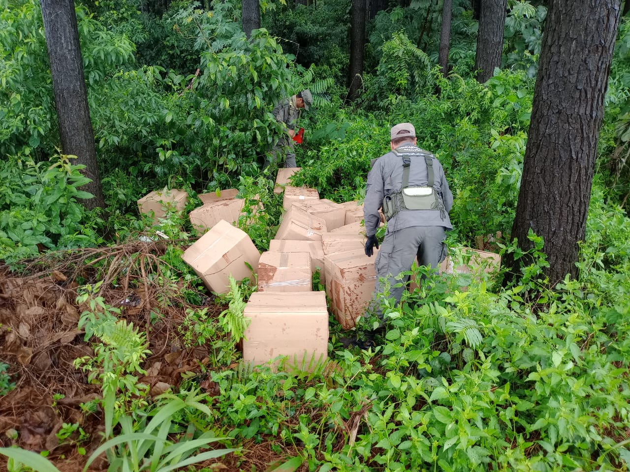 Ayer, integrantes de la Sección “Puerto Rico”, que depende del Escuadrón 11 “San Ignacio”, efectuaban tareas de patrullaje a pie por distintos caminos terrados afectados por fuertes precipitaciones, en cercanías al límite internacional fronterizo, al momento en que observaron cajas de cartón ocultas en un pinar del barrio Mapuri.