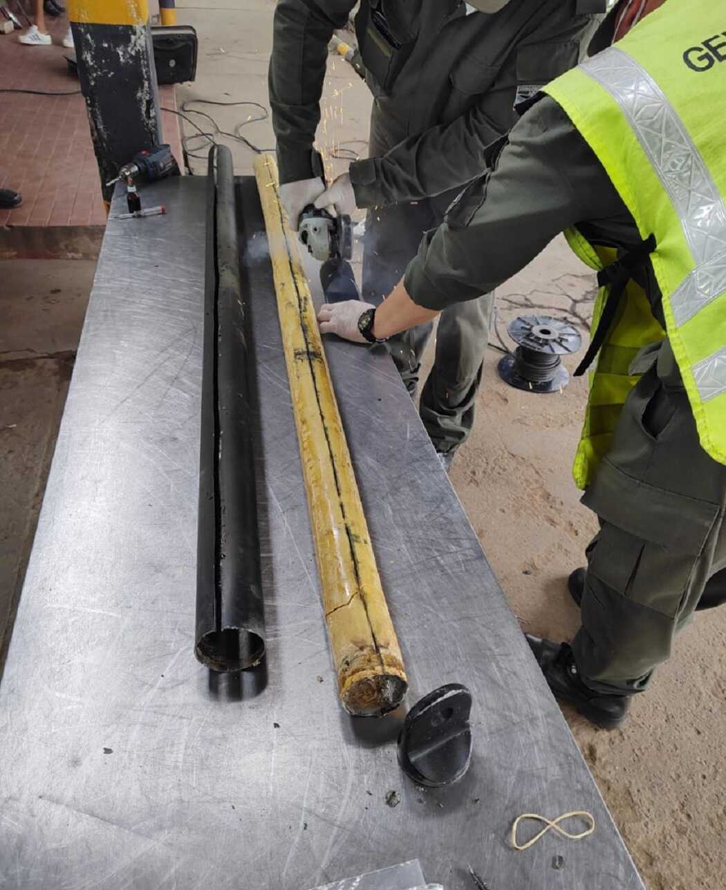 Ante esa situación, en presencia de testigos, los gendarmes utilizaron una amoladora para cortar el elemento metálico y detectaron que contenía una sustancia pastosa.