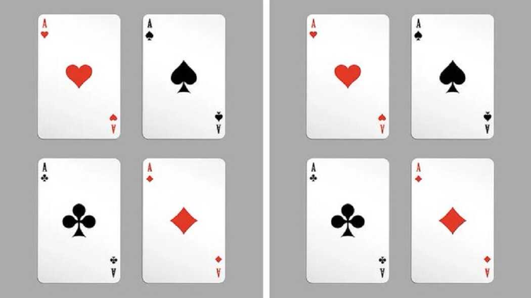 Si estás listo para poner a prueba tu agudeza visual, este juego es para vos. Pero, ojo, tenés que ser un as de los desafíos. En la imagen, las cartas de un lado y del otro aparentan ser idénticas, como un reflejo perfecto, pero hay 3 diferencias sutiles entre ellas. ¿Podrás descubrirlas en menos de 15 segundos?