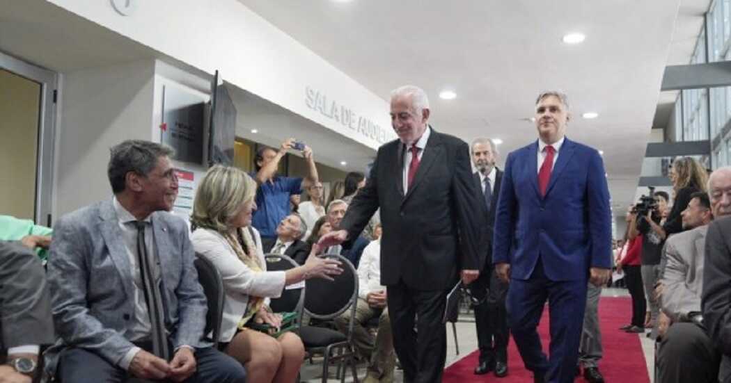 Maqueda estuvo sentado silla de por medio con el gobernador Martín Llaryora, en la extraña costumbre de la Justicia cordobesa de ubicar en la misma cabecera a los presidentes de poderes distintos.