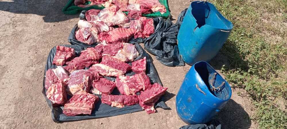 Seguidamente, los rurales al verificar los tachos, constataron que tenía en su interior varios cortes de productos cárnicos. Uno de los conductores, adujo que se trataba de un animal vacuno de su patrón, quién autorizó la faena porque el animal se encontraba lesionado.
