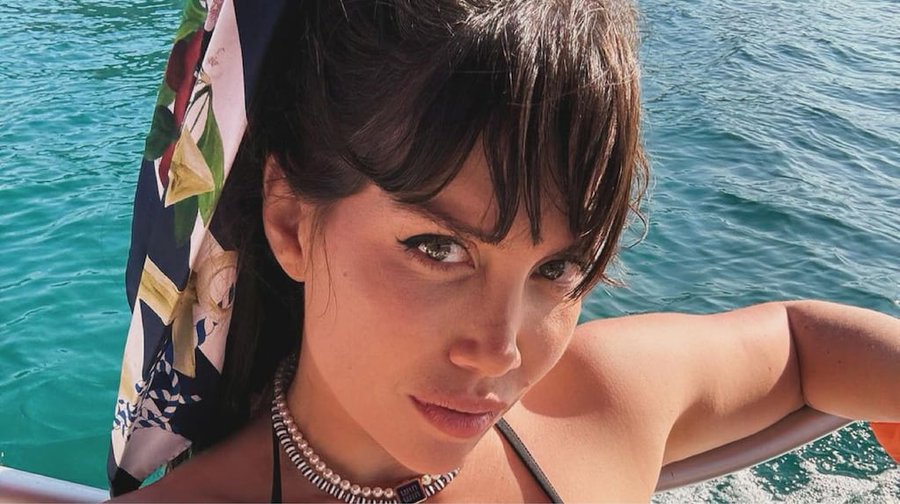 En una de las imágenes, acompañó la bikini con un pañuelo marrón firmado por Guccilentes de sol estilo aviador y un bolso playero de Dior.