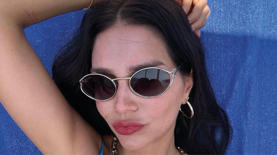 Fiel a su estilo, complementó la dupla con una serie de accesorios de lujo: lentes de sol ovalados, de inspiración vintage, con vidrio superopaco y marco dorado; aros argolla de tamaño mediano y un collar estilo cadena color oro.