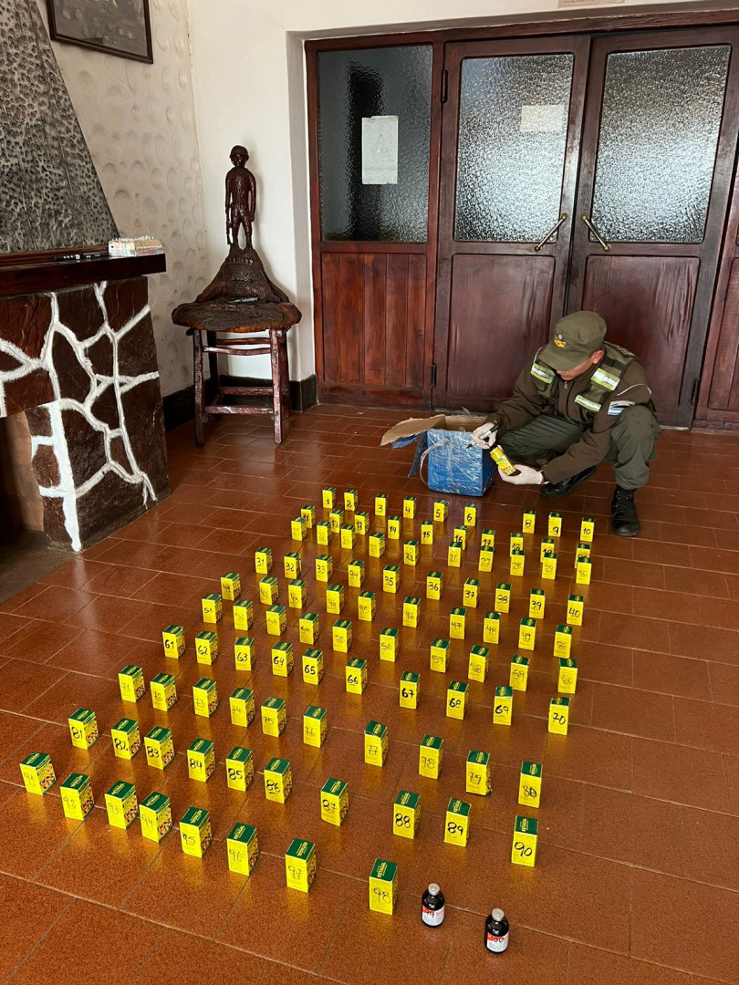 Ayer, en presencia de testigos, los funcionarios abrieron una encomienda detectaron 100 frascos de ketamina de 50 ml cada uno, tratándose de un anestésico de uso veterinario sin ninguna documentación que respalde o justifique su traslado.