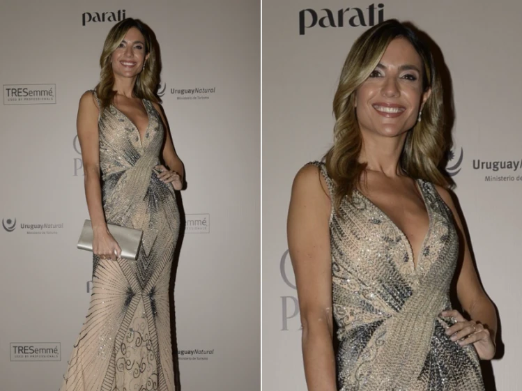 Por su parte, como embajadora de la consigna de moda circular, María Belén Ludueña decidió sumar un clutch dorado prestado para la ocasión.