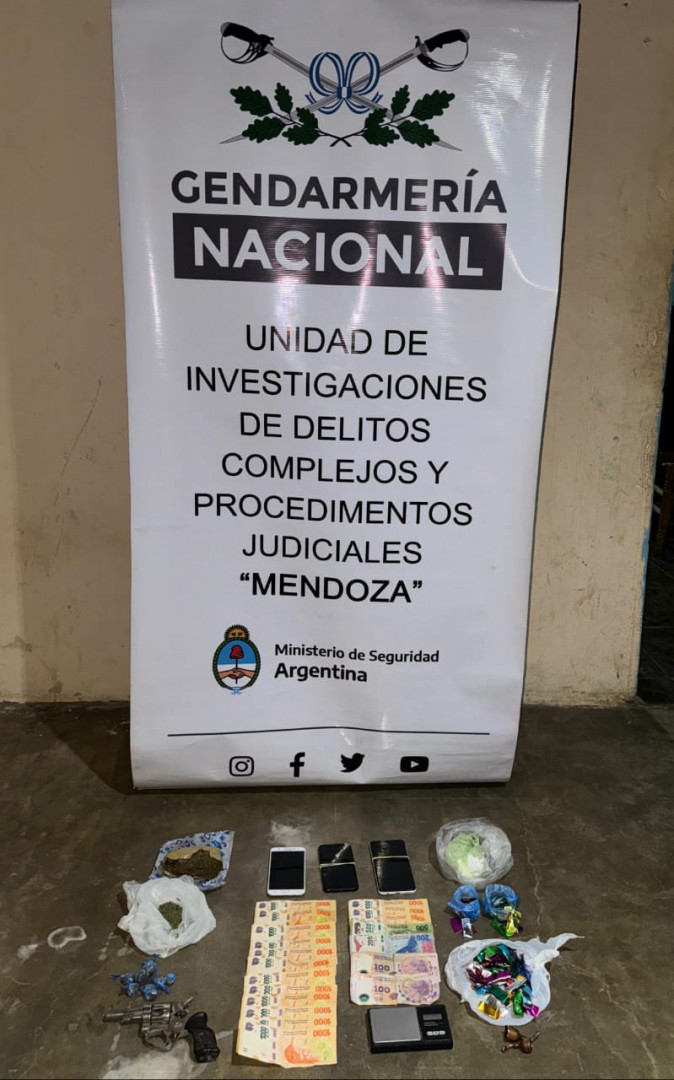 Durante la inspección, los uniformados secuestraron 365 gramos de marihuana, 325 gramos de cocaína (ambos estupefacientes fraccionados y preparados como para la comercialización), un revólver, una balanza digital, dos pipas artesanales, bolsas de nylon, papel glase metalizado, celulares, dinero en efectivo y demás elementos de interés para la causa.
