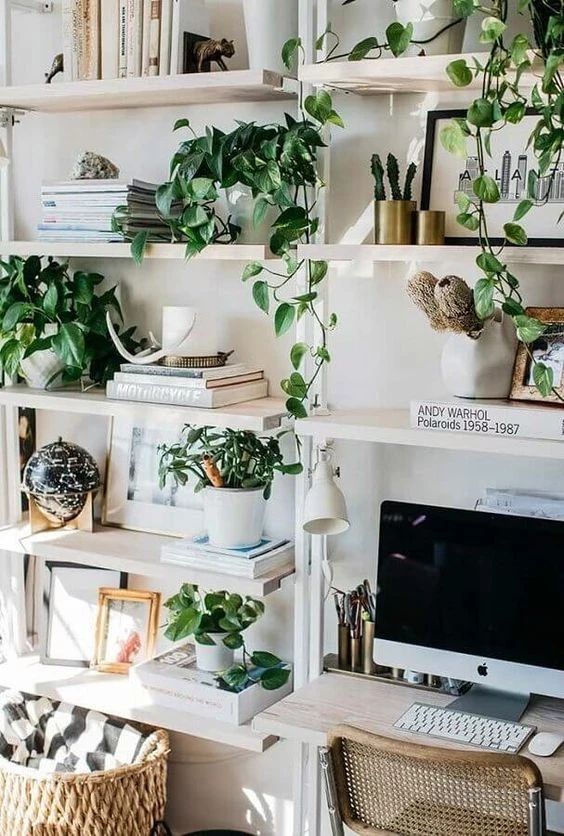 Queda divina en bibliotecas y estantes gracias a su porte colgante y hojas de color verde brillante.