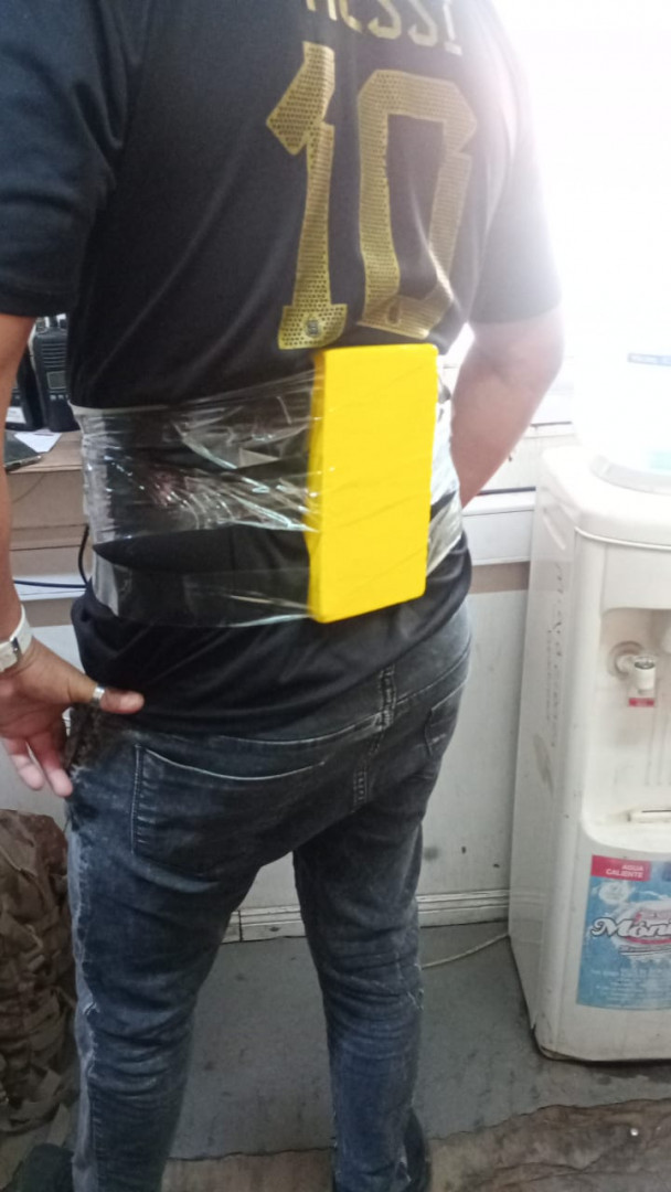 Tras el control, los gendarmes descubrieron que uno de los ciudadanos llevaba cuatro paquetes rectangulares debajo de sus prendas de vestir, mientras que el otro escondía un “ladrillo” adosado al cuerpo, los cuales contenían una sustancia blancuzca.
