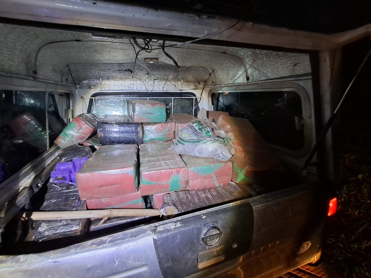 Posteriormente, las tareas de rastrillaje en la zona resultaron en el hallazgo de la camioneta abandonada, pudiéndose observar bultos de grandes dimensiones en su interior, por lo que los funcionarios inspeccionaron los mismos en presencia de testigos, constatando un total de 1.176 kilos 940 gramos de “cannabis sativa”, distribuidos en 1.717 paquetes rectangulares.