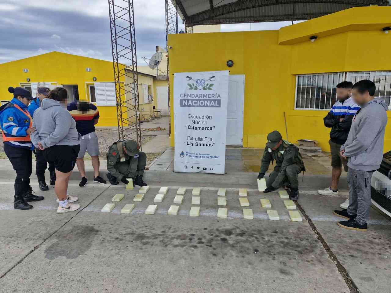 Con autorización del Juzgado Federal N° 1 de Catamarca y en presencia de testigos, los funcionarios extrajeron de ambos paneles 27 paquetes rectangulares envueltos en film, conteniendo sustancia blanca. Los cuales fueron sometidos al ensayo para orientación de droga (EPOD), que arrojó resultado positivo para cocaína, con un peso total de 28 kilos 563 gramos.