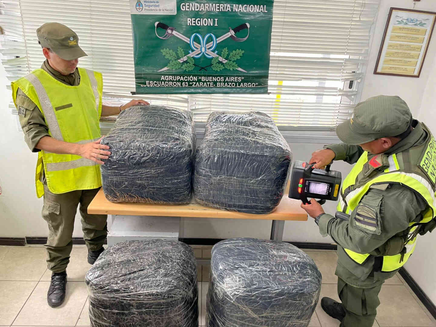 Seguidamente, los funcionarios sometieron cuatro encomiendas al escáner portátil, donde visualizaron la existencia de mercadería en infracción a la Ley 22.415.
