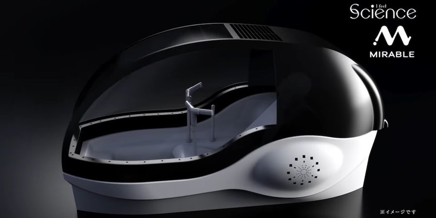 El dispositivo, denominado en japonés “Mirai Ningen Sentakuki” (que se traduce como “lavadora humana del futuro”), es mucho más que una bañera convencional. Su diseño, que se asemeja a una cápsula o casco gigante, incluye un asiento reclinable y una cubierta transparente que funciona como techo y puerta.
