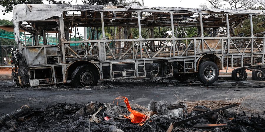 Fotografía de un autobús incinerado durante una operación de autoridades brasileñas contra bandas narcotraficantes este martes, en Río de Janeiro (EFE/Andre Coelho)Fotografía de un autobús incinerado durante una operación de autoridades brasileñas contra bandas narcotraficantes este martes, en Río de Janeiro (EFE/Andre Coelho)
