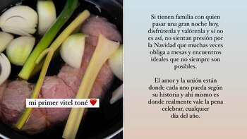 Quien también vive una Navidad especial es Jimena Barón. A pocas semanas de anunciar su embarazo, la cantante no oculta su felicidad por el gran momento personal que atraviesa. En ese marco, la intérprete de “La Cobra” mostró cómo se preparaba para celebrar en familia. “Mi primer vitel toné”, escribió la influencer junto a un emoji de corazón mientras mostraba cómo se cocinaba su preparación en la olla.