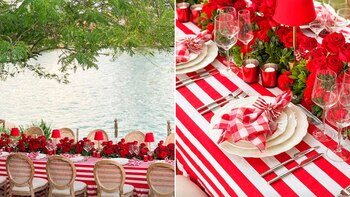 Con el sol próximo a ocultarse, Wanda Nara mostró a través de sus stories de Instagram los preparativos para la gran cena que tendrá. Con una larga mesa para más de 10 invitados ubicada a metros del río, decorada con un mantel rojo y blanco a rayas, rosas y lámparas del mismo color como centro de mesa, la conductora mostró el detrás de escena de su festejo.