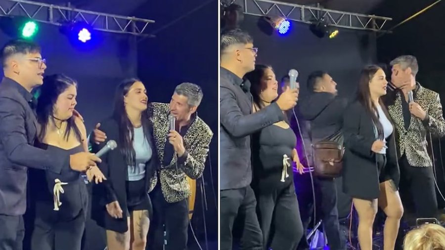 En la grabación, publicada por la cuenta @anitamolina366, se lo puede ver al cantante sobre el escenario abrazado a Daniela Molina, otra artista que debía presentarse esa noche en el local bailable.