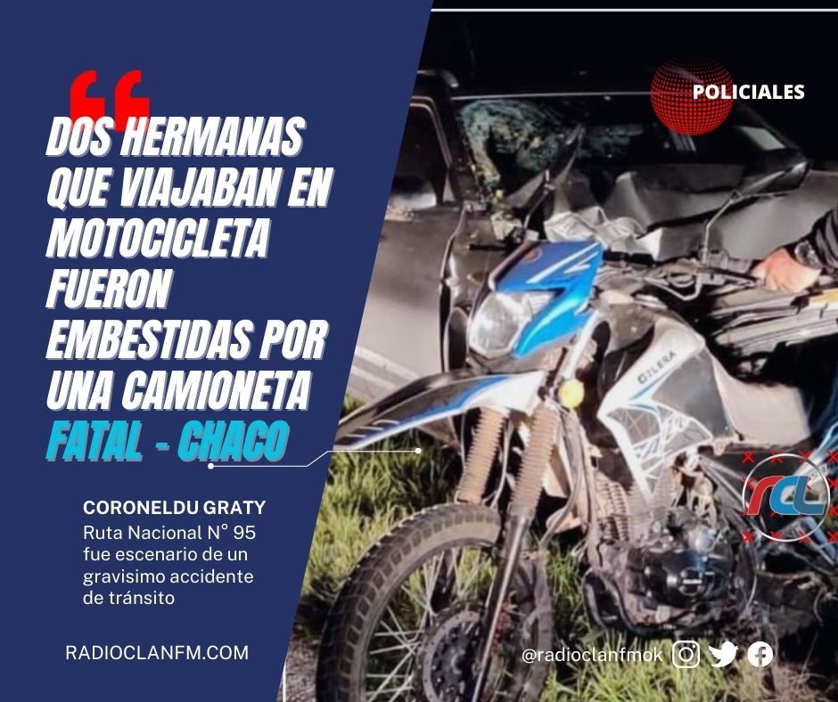 El siniestro ocurrió a pocos kilómetros del casco urbano de Coronel Du Graty. Las víctimas viajaban en moto y fueron embestidas por una camioneta. Una de ellas murió poco después del impacto.