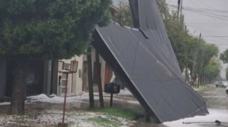 También salió despedido un tanque de agua que estaba lleno. La fuerza del viento fue tal que el techo impactó primero contra un poste de luz metálico, que quedó completamente doblado, y terminó apoyado sobre la vivienda de enfrente.