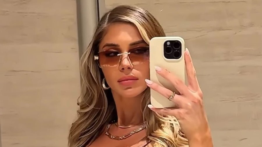 En pleno otoño, Romina Malaspina se filmó frente al espejo en microbikini y lentes de sol