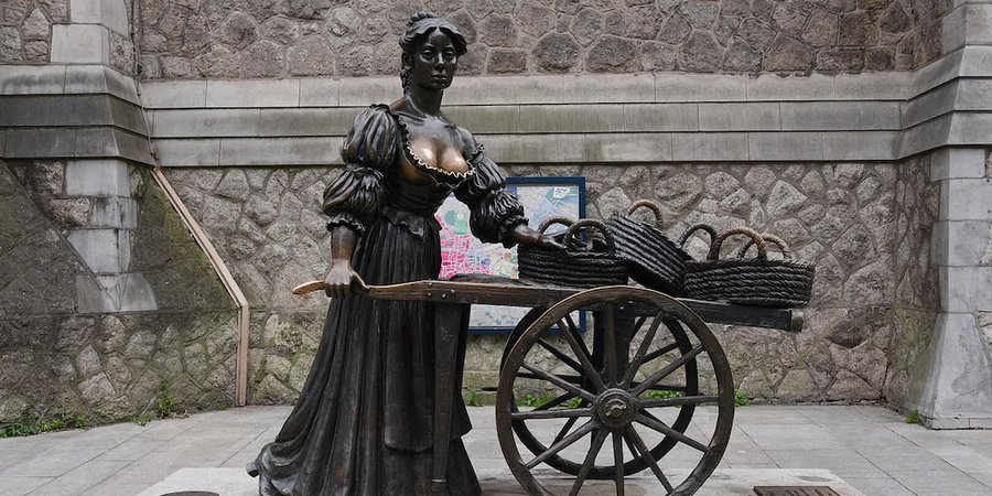 En el corazón de Dublín, una escultura de bronce representa a una joven pescadera empujando una carretilla repleta de mariscos. Su imagen, lejos de ser un retrato histórico, emana del imaginario popular. Se trata de Molly Malone, la mujer que nunca existió pero que todos en Irlanda conocen.