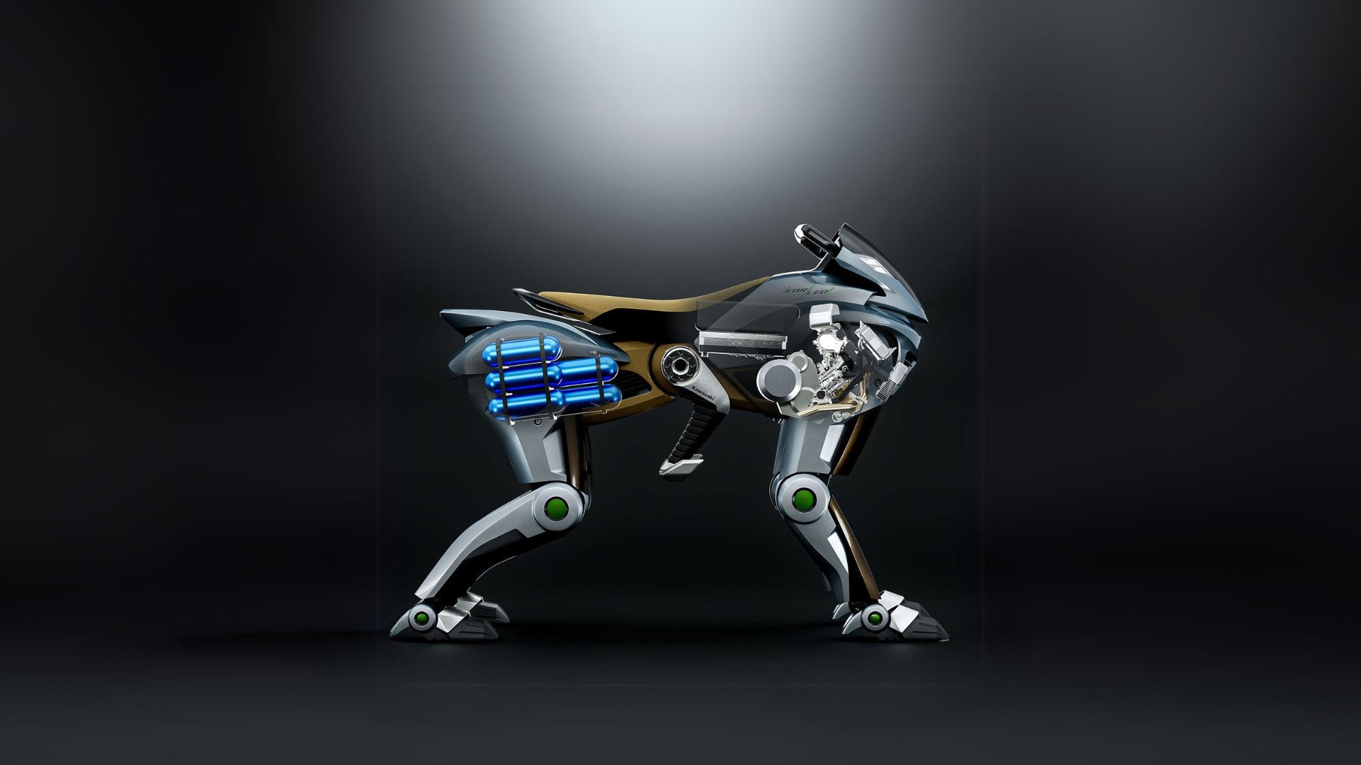 Así es cómo Kawasaki describe Corleo: “Nuestro revolucionario vehículo de movilidad personal ofrece una excelente capacidad todoterreno, impulsada por cuatro patas robóticas. A la vez que preserva el placer de conducir, el vehículo supervisa continuamente los movimientos del piloto para lograr una tranquilizadora sensación de unidad entre el ser humano y la máquina. Escale montañas, respire aire fresco y disfrute de vistas panorámicas. Deje que Corleo dé rienda suelta a su impulso de moverse en plena naturaleza”