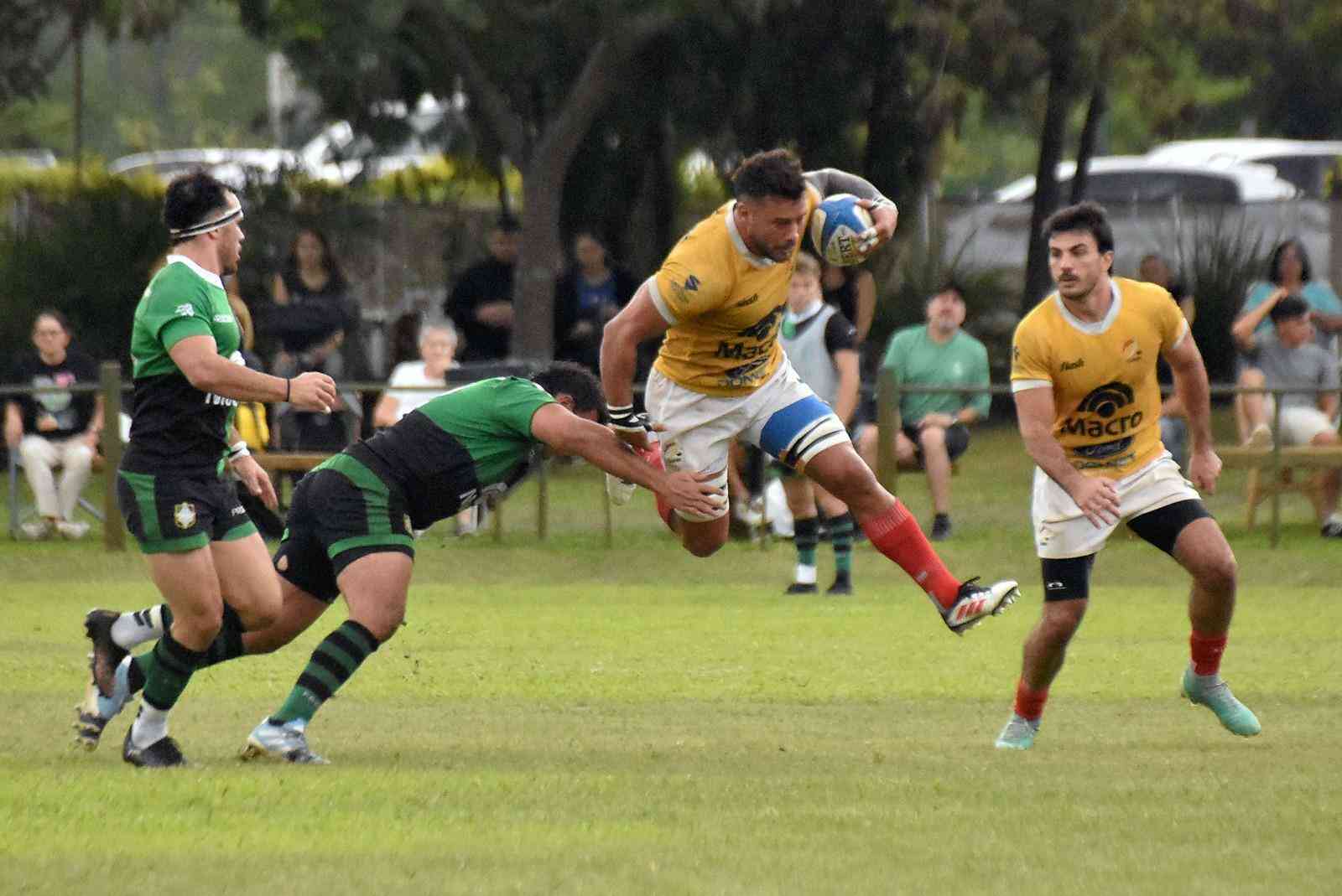 A pesar del vaivén, el Amarillo fue quien supo manejar nuevamente el factor sorpresa para aprovechar la primera del encuentro: corrida de Juan Cruz Palamedi pasando mitad de la cancha y pase sobre el contacto para un Kalim Burlli que solo tuvo los metros finales de carrera para poner el primer try del partido. 7-0 parcial tras la conversión de Juan Sánchez.