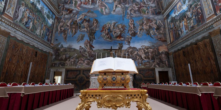Diseñada por Baccio Pontelli en el siglo XV y decorada por artistas como Botticelli, Perugino y Ghirlandaio, la Capilla Sixtina contiene además los frescos más emblemáticos de Miguel Ángel, que incluyen la bóveda (1508-1512) y el Juicio Universal (1536-1541). Estas obras fueron restauradas en décadas recientes, permitiendo recuperar la viveza original de los colores. Durante el cónclave, estas imágenes rodean a los cardenales mientras deliberan, constituyendo un recordatorio simbólico de la dimensión espiritual de su tarea.