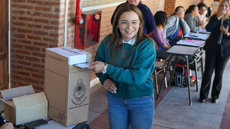 La candidata de Primero Chaco acudió a emitir su voto desde la Escuela Nº 954 “Juan Domingo Perón” de la ciudad portuaria.
