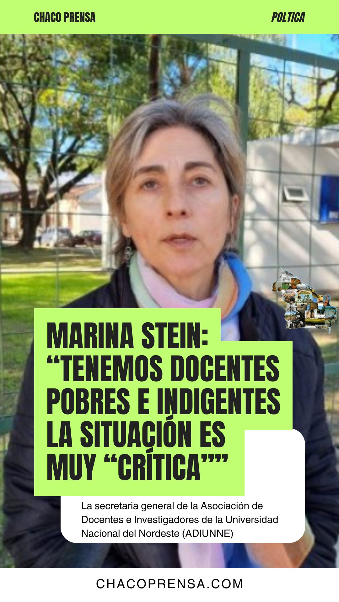La secretaria general de la Asociación de Docentes e Investigadores de la Universidad Nacional del Nordeste (ADIUNNE) advirtió que la situación en las universidades públicas es “crítica” desde la asunción del nuevo gobierno nacional. En declaraciones recientes, expresó su preocupación por la falta de recursos y el deterioro del salario docente.