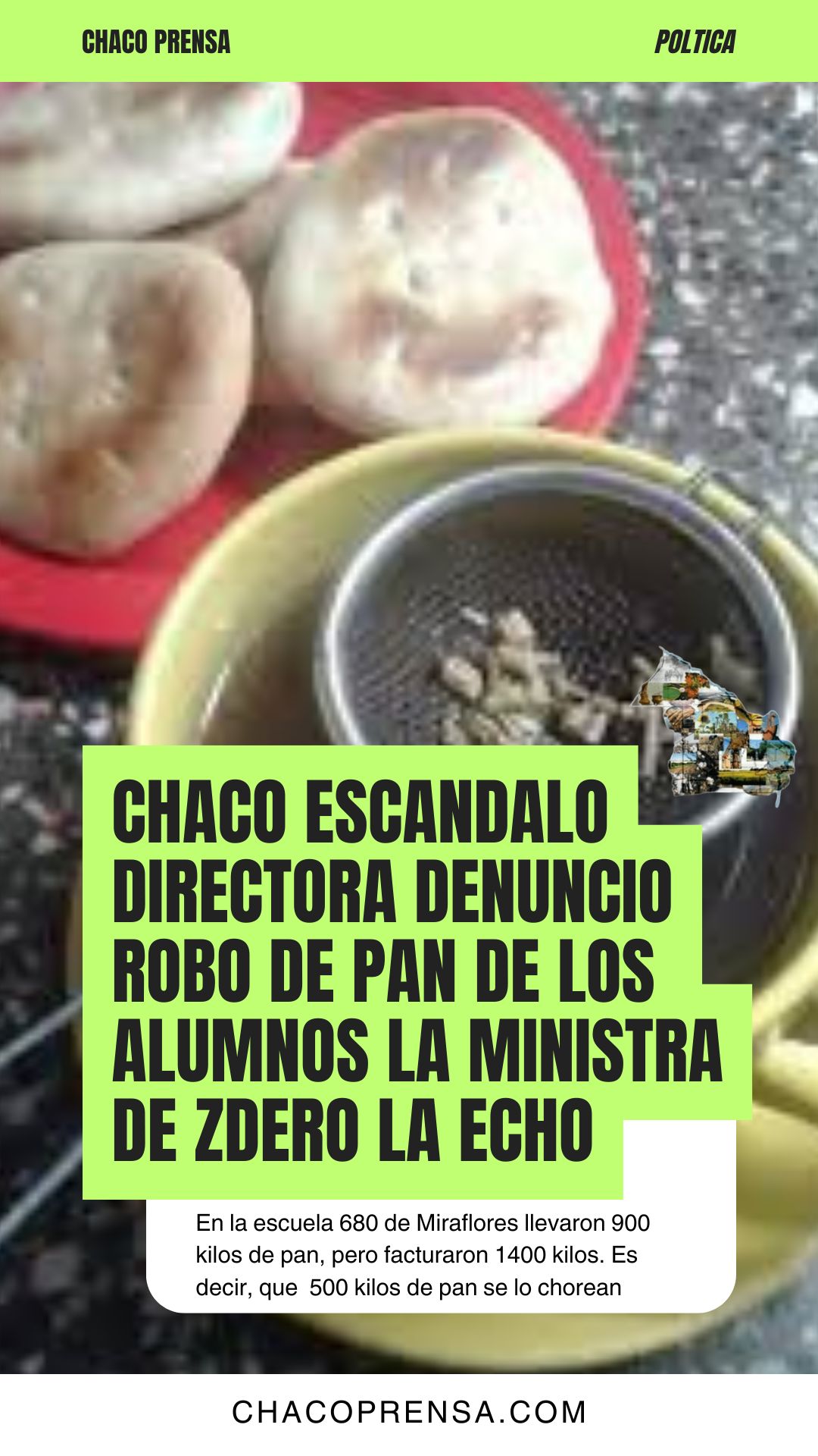 el insólito robo en el que está involucrado el Ministerio de Desarrollo Humano en complicidad con el ministerio de Educación. En la escuela 680 de Miraflores llevaron 900 kilos de pan, pero facturaron 1400 kilos. Es decir, que 500 kilos de pan se lo chorean o se quedan con ese importe La directora denunció este hecho.