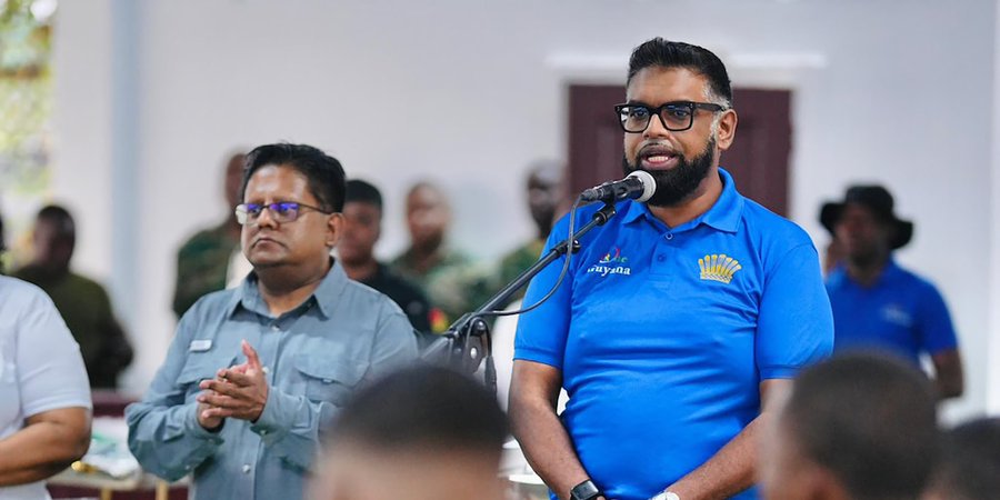 “Quiero asegurarles que, en primera línea, los respaldamos con la sangre de cada guyanés, dispuestos a apoyar cualquier esfuerzo necesario contra quienes buscan desestabilizar la paz en nuestra región”, sumó ante los uniformados, a quienes le transmitió su “plena confianza” para la tarea encomendada.