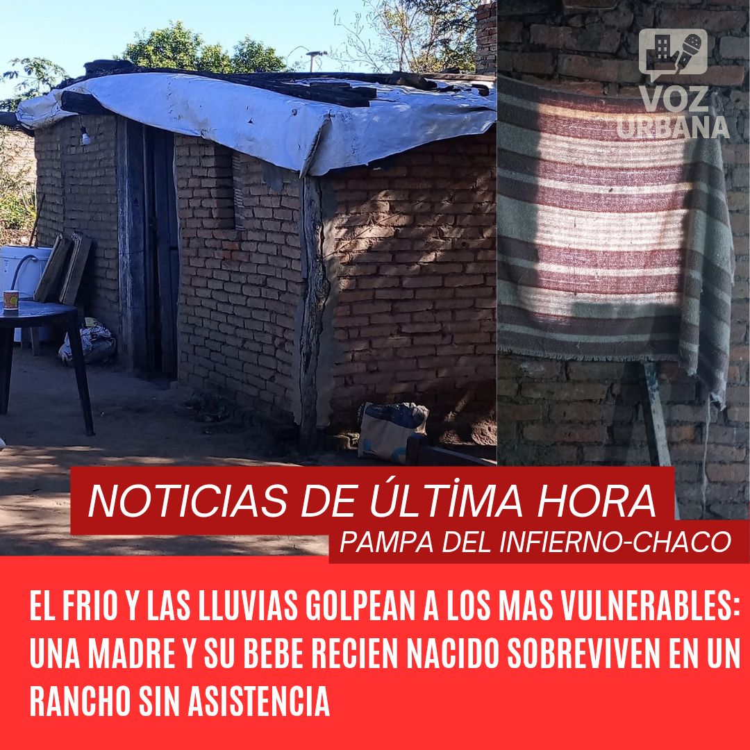 Pampa del Infierno-Chaco // EL FRÍO Y LAS LLUVIAS GOLPEAN A LOS MAS VULNERABLES: UNA MADRE Y SU BEBÉ RECIEN NACIDO SOBREVIVEN EN UN RANCHO SIN ASISTENCIA
