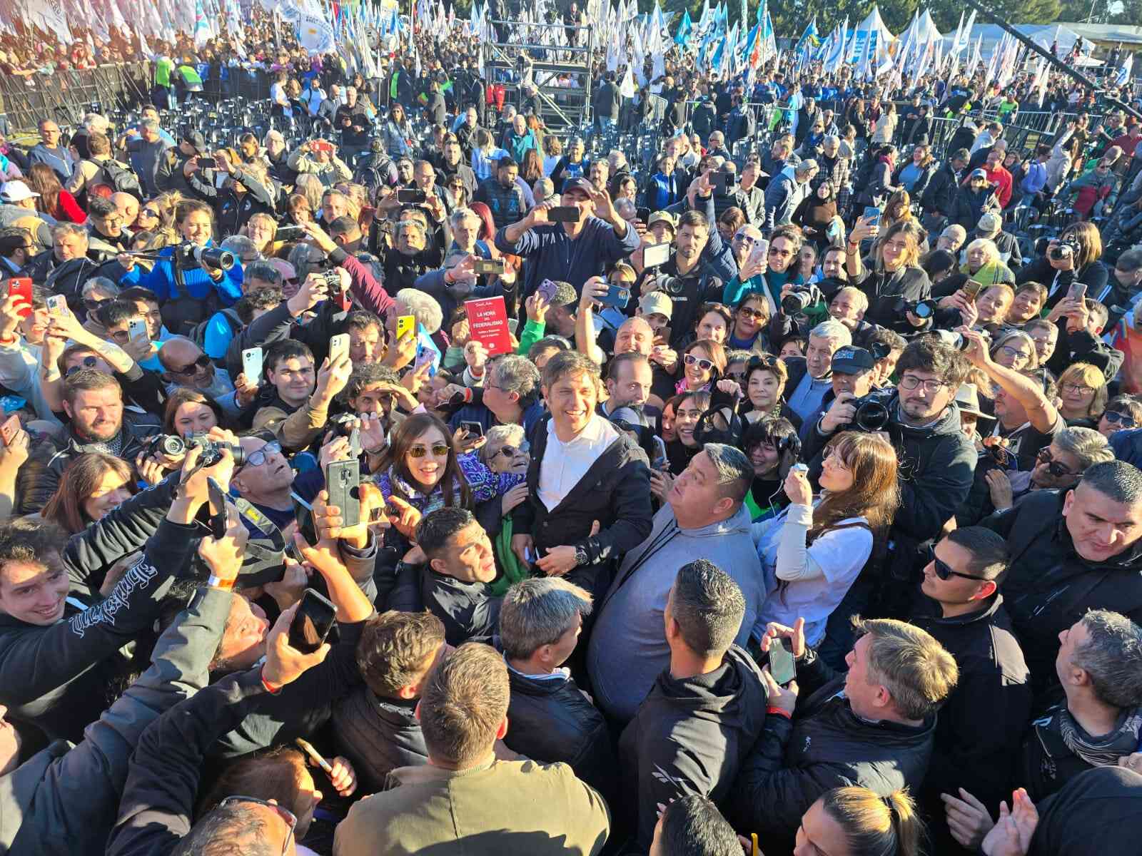 El gobernador convocó a todos los sectores a conformar un frente bonaerense. “Lo que está en juego acá es que la motosierra no cruce la General Paz, que no entre a la provincia de Buenos Aires. Por eso hoy también, desde nuestro movimiento, convocamos a todos los sectores a formar un gran frente bonaerense, un frente por la salud, por la educación, por la seguridad, por la producción, por el trabajo”, dijo.