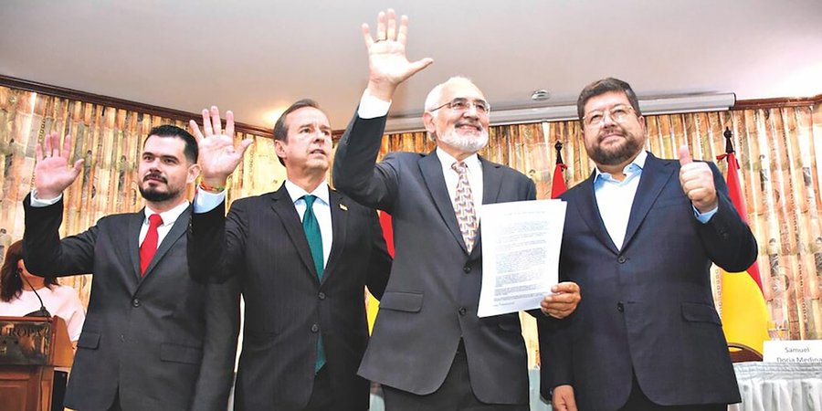 Los tres opositores emitieron un documento titulado “Acuerdo por el bien común de Bolivia”, tras reunirse en esta jornada en Cochabamba por invitación de Reyes Villa.