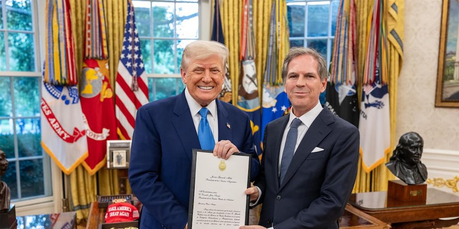 El embajador argentino en Estados Unidos, Alec Oxenford, presentó hoy sus credenciales al presidente Donald Trump en una ceremonia realizada en el icónico Salón Oval de la Casa Blanca. La ocasión también sirvió para que el diplomático expresara su satisfacción por la cálida bienvenida recibida tras su reciente llegada a territorio estadounidense.
