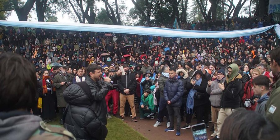 Hubo un banderazo en Laferrere y otro en Ushuaia, además de una marcha en Mar del Plata. Pero la más convocante fue la de Argentina Humana, el espacio que lidera Juan Grabois, durante la tarde de este sábado. Miles de militantes se juntaron en el Parque Lezama, la triple frontera del sur porteño donde se tocan los barrios de La Boca, San Telmo y Barracas. Y desde allí caminaron hasta la casa de CFK, a menos de dos kilómetros de distancia.