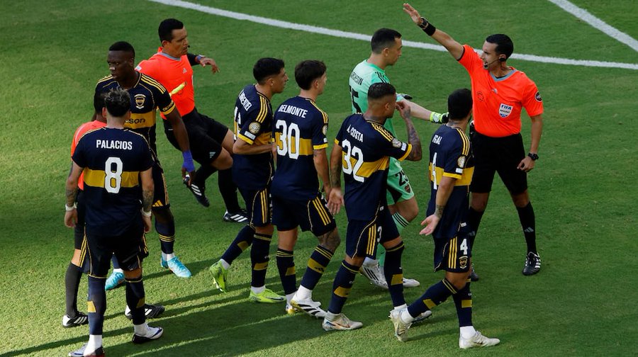 Una vez que terminó el primer tiempo, todos lo jugadores de Boca se fueron contra el árbitro para recriminarle por esta decisión. Incluso, cuando había ido al VAR, el juez ya le había sacado la tarjeta roja al español Ander Herrera, que estaba en el banco de suplentes del equipo argentino tras haber sido reemplazado por lesión. La tensión del lado del Xeneize era evidente.