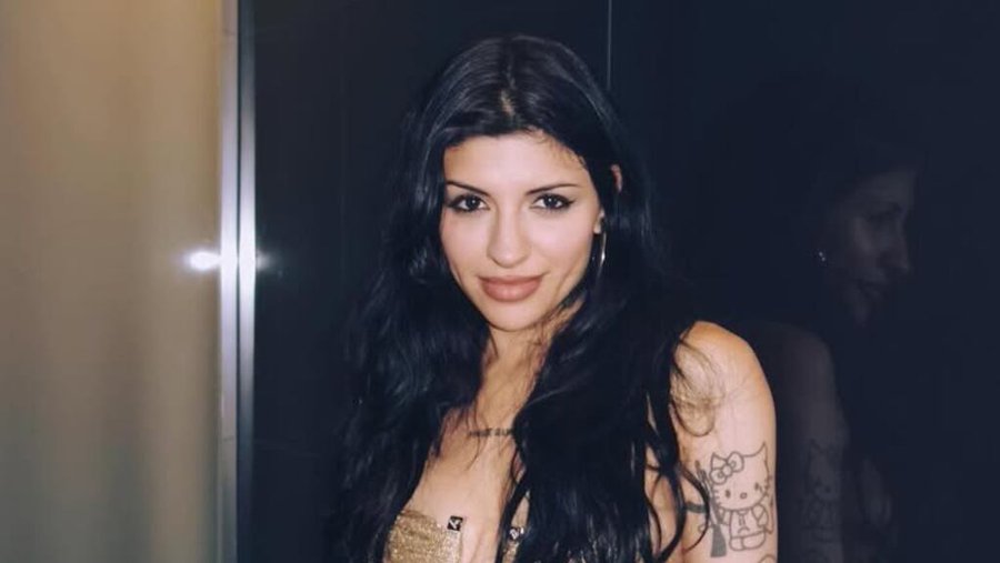 Cazzu eligió un top extra small y mini de lurex para subirse al escenario junto al trapero C.R.O