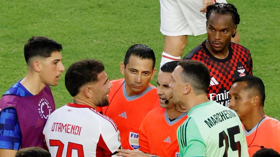 Tras el pitazo final, las cámaras siguieron a Otamendi a raíz de un altercado que había tenido en el campo de juego. Agustín Marchesín encaró a un futbolista del Benfica para hacerle un reclamo y allí intercedió Otamendi, empujando al arquero para sacarlo del tumulto.