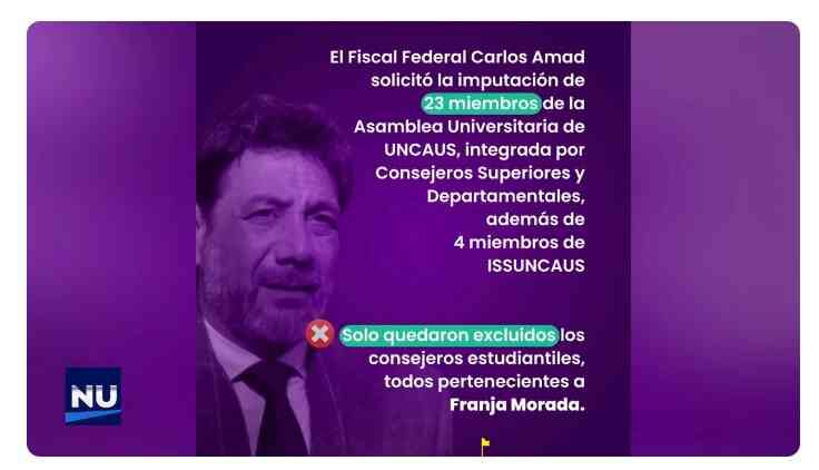 Docentes de UNCAUS demandan a Franja Morada por difamación tras falsas acusaciones
