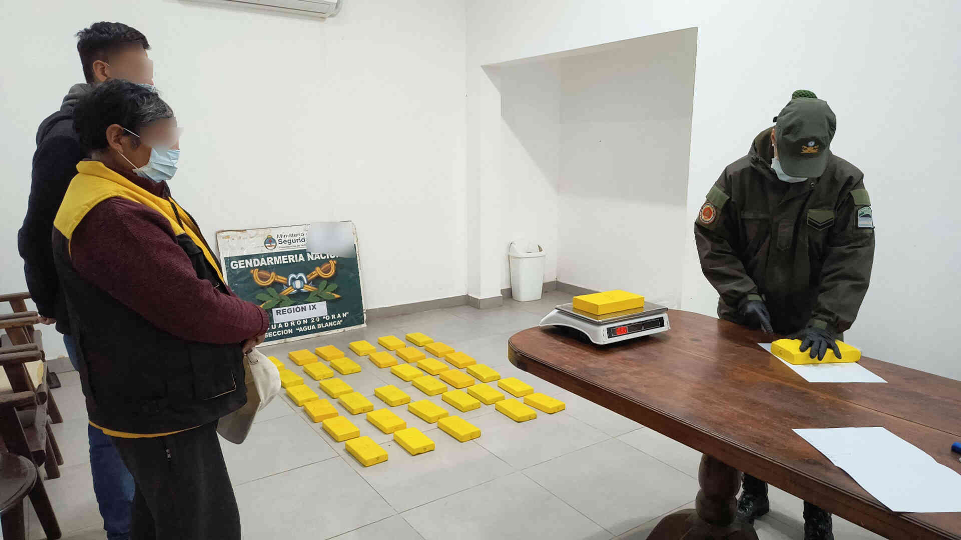 Al abrir los 30 bultos y tres mochilas, los uniformados corroboraron la existencia de 37 kilos 674 gramos de la droga, 390 kilos de hojas de coca, 8.750 atados de cigarrillos y una pistola calibre 9 mm cargada con seis municiones.