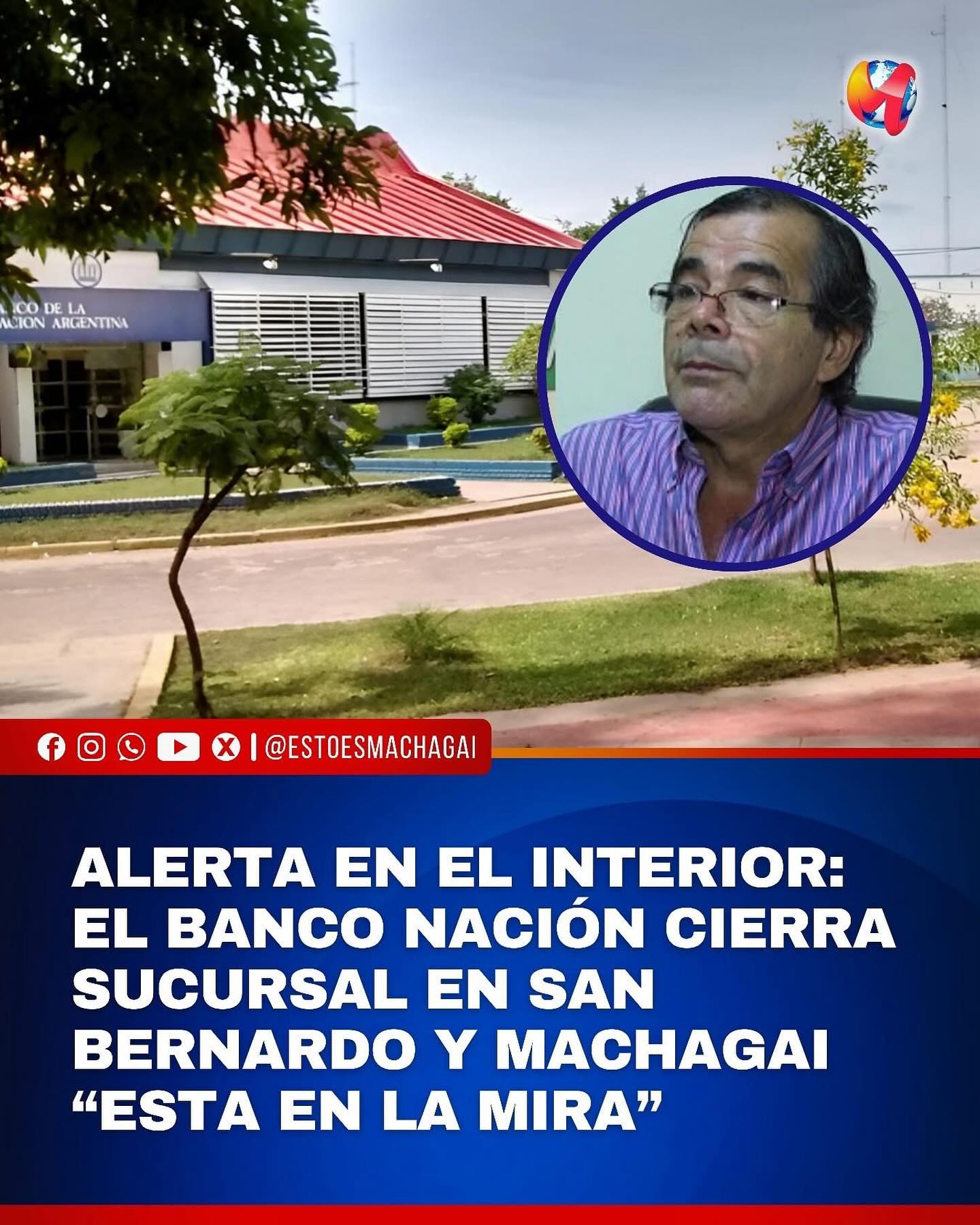 El gremio La Bancaria confirmó el inminente cierre de la sucursal del Banco de la Nación Argentina (BNA) en la localidad de San Bernardo, encendiendo una luz de alarma en toda la región. La decisión forma parte de un plan nacional de cierre de 60 sucursales, muchas de ellas podrían ser en pueblos del interior chaqueño, como Quitilipi, Corzuela, Colonias Unidas, Tres Isletas y también Machagai, que figuran “en la mira” para una posible disolución.