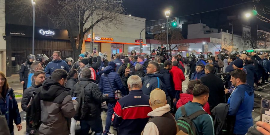 En medio de un fuerte operativo policial, socios y agrupaciones políticas del club se congregaron en Avenida La Plata para repudiar al presidente en licencia