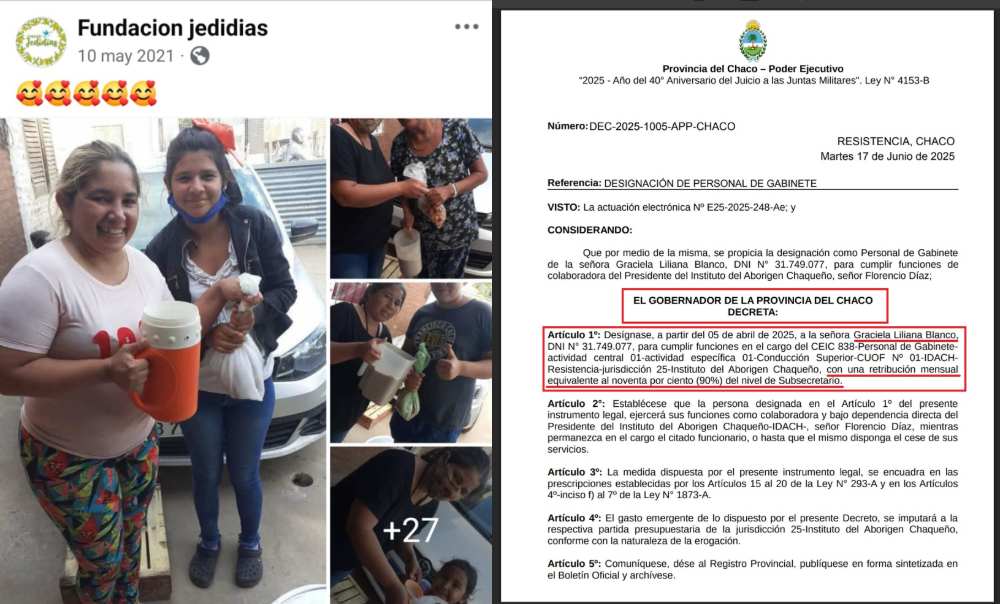 Según el decreto que propició su nombramiento decreto 1005/2025), Blanco (DNI 31.749.077), fue designada para cumplir funciones como colaboradora del Presidente del Instituto del Aborigen Chaqueño (IDACH), Florencio Díaz.